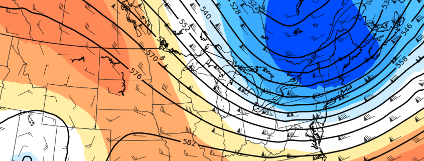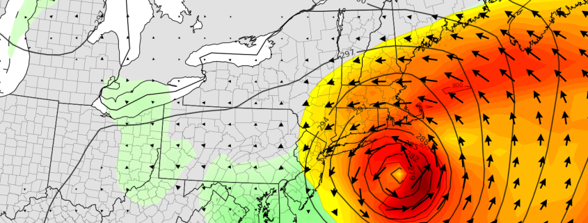 An active and colder weather pattern appears likely to continue for at least the next week, and it may be capped off with a large storm system as its grand finale this coming weekend. The pattern has been well advertised, and it arrived with some fanfare – a few strong cold fronts over the past few days have brought a myriad of hazardous weather to the Northeast states. Sunday featured the first real brisk, cold day in a while with a deep northwesterly flow and even a few lake effect snow/rain bands streaming into the Catskills.