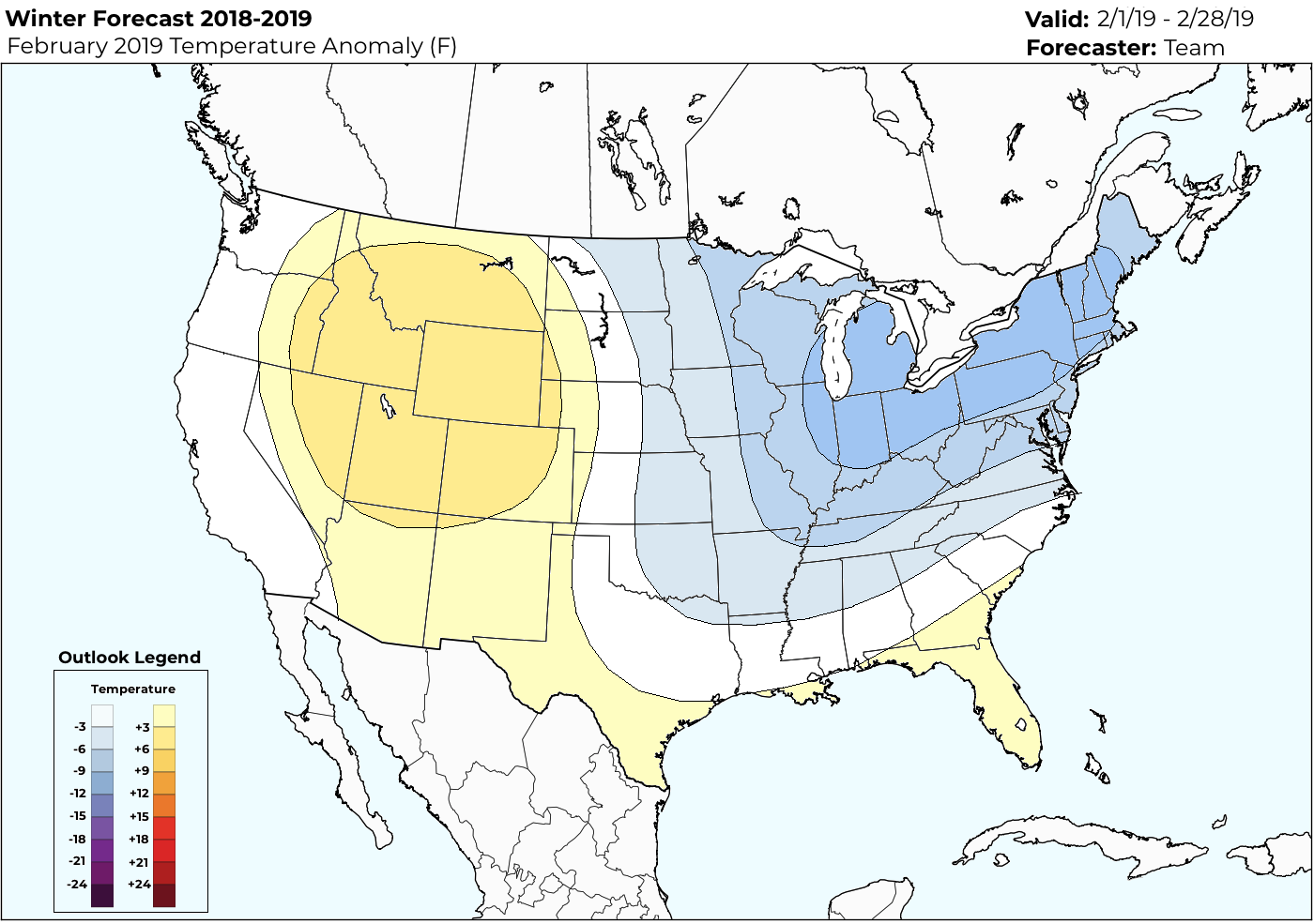 The largest uncertainty of the entire winter exists during this month. The weather pattern is largely expected to transition across the country – with the pattern across the North Pacific Ocean and higher latitudes adjusting dramatically. This shift will gradually promote colder weather across the Central and Eastern United States. It remains to be seen exactly when this shift will occur, how it will occur, and how extreme (or gradual) it will be.