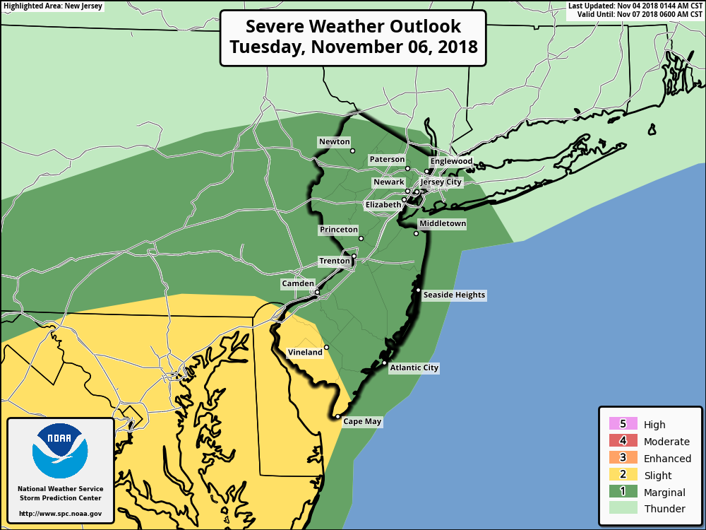Storm Prediction Center has issued a Marginal and Slight Risk of severe weather in parts of the Northeast on Tuesday.