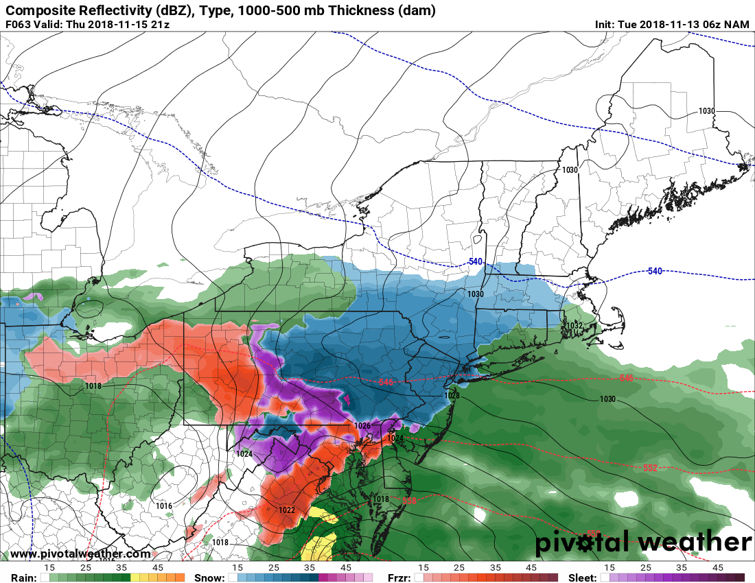 Precipitation is expected to expand northward through the Mid-Atlantic on Thursday, especially from late Thursday morning into Thursday afternoon. As it does so, the affects of the cold air sinking southward will become apparent, as almost all reliable forecast model guidance suggests that precipitation will start as snow even in areas such as Southeastern PA (including Philadelphia), New Jersey and New York City.