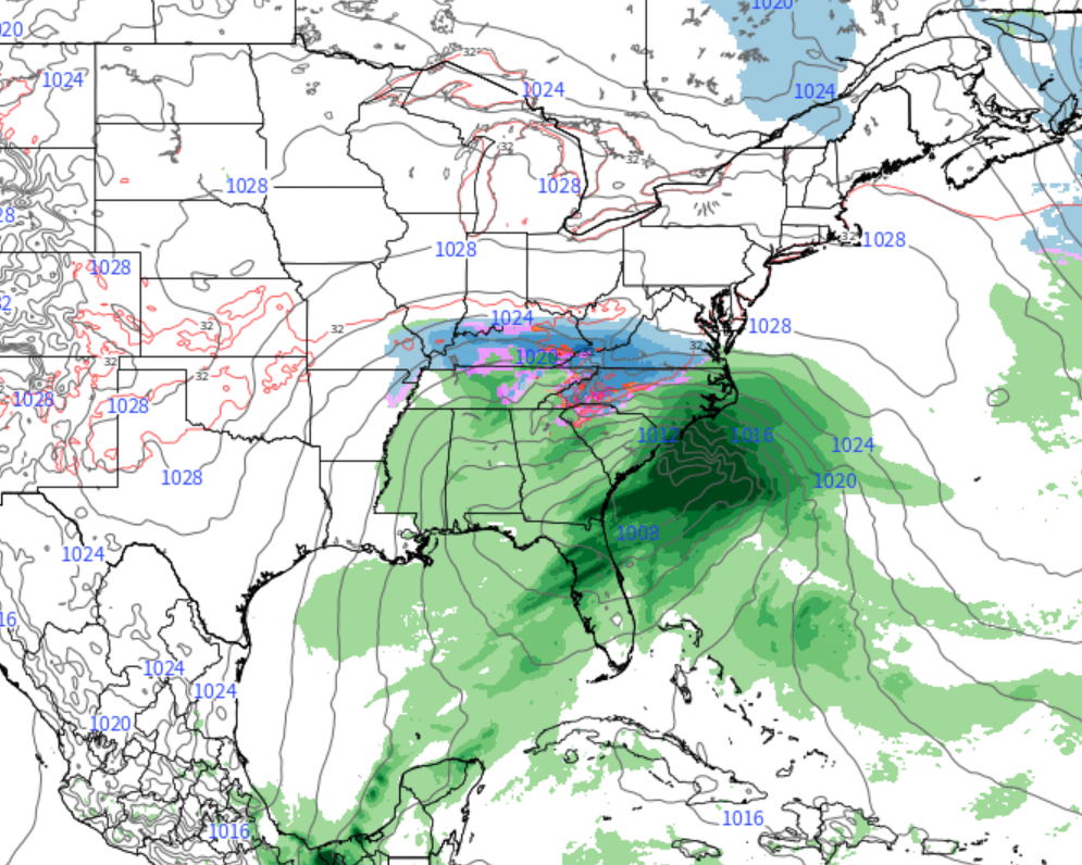 As of right now, the most likely scenario is that the main upper level system over Texas will begin to strengthen during the day on Saturday, while another piece of energy from the Arctic dives into the Northern Plains, causing the main storm to speed up. Additionally, another area of energy will likely be located over Southeastern Canada, which will be injecting very dry air over portions of the Mid-Atlantic and Northeast. This dry air will essentially act as a wall during the day on Sunday as the main surface low moves through the Southeastern US and tries to make some northward progress. At this point, the forecast will be dependent on just how strong the disturbance over Southeast Canada is at the time. If the system is weaker, there is a chance that meaningful precipitation is able to make its way north and impact DC to Philadelphia. However, the model runs from this afternoon showed increased dry air and “confluence”, forcing the main impacts down into portions of KY, WV, VA, and NC.