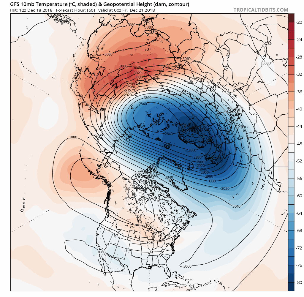 GFS Model showing a Sudden Stratospheric Warming event in late December.