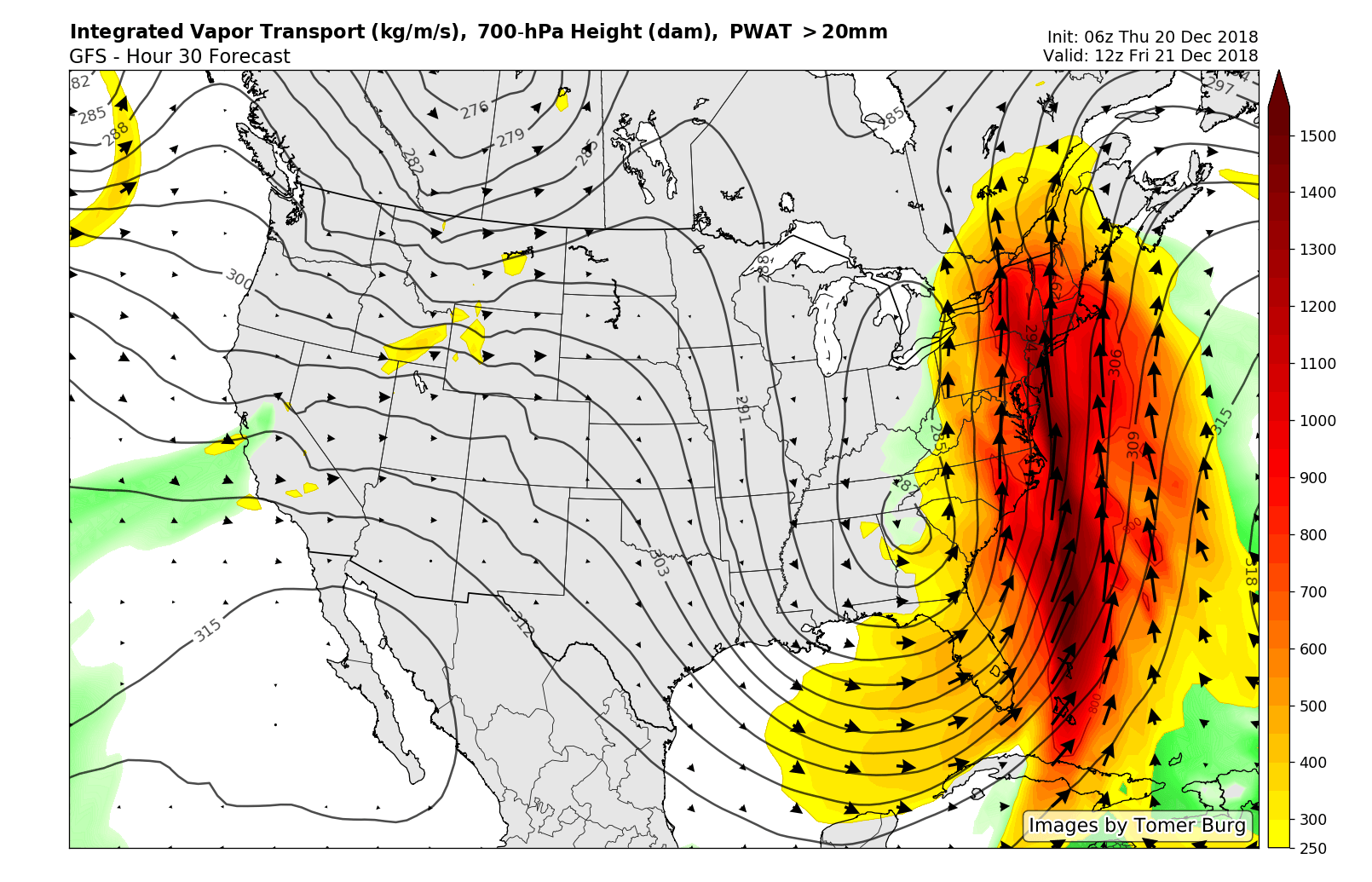 Things really begin to go downhill by 8-10pm tonight as a large shield of moderate to heavy rainfall overspreads the entire Mid-Atlantic and Northeast. This area of heavy rain will be fed by an extremely impressive low-level jet that will originate all the way from the Caribbean. In fact, the moisture being transported into our area will likely break precipitable water values for this time of the year by nearly three-hundred percent!