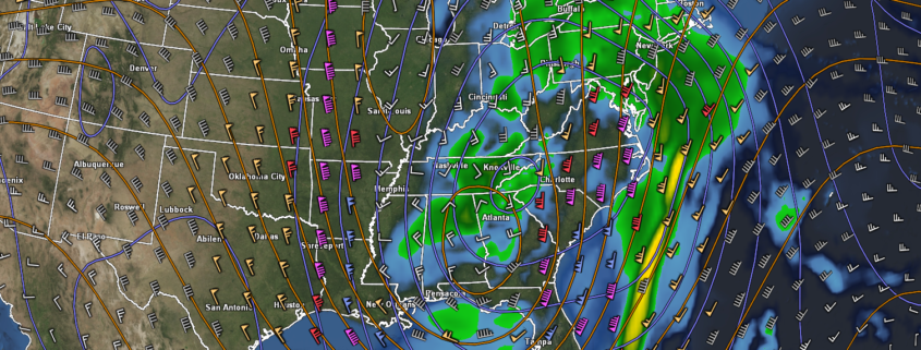This afternoons ECMWF model showing another exspansive storm system moving off to our west, bringing unsettled and above-average conditions to much of the East