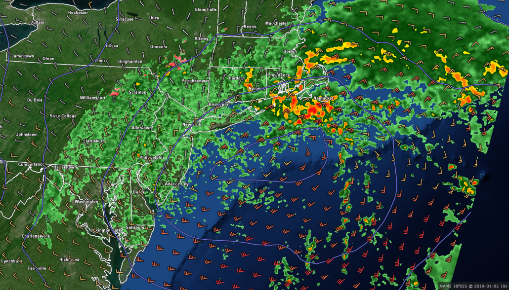 As the large upper level low located to our south begins to slightly become more organized Friday night and into Saturday, a surface low pressure system will begin to develop near Norfolk, Virginia. As this low begins solidify, a large area of steady rain should begin to overspread the entire New York metro area by 5-7am. The surface low pressure located to our south will help to direct a deep moisture feed directly into the area, likely causing a heavier batch of rain to move through around 8-10 am. While dynamics aren’t too impressive with this system overall, we could still see some localized areas of very heavy rainfalls with even a rumble of thunder mixed in–especially over portions of Long Island. As we head into the late morning and early afternoon hours on Saturday, the surface low pressure should then track off of the Southern New Jersey coast pushing the vast majority of the remaining heavy rainfall off the Mid-Atlantic coast. Additionally, highs will be once again be stuck in the lower to middle 40’s across much of the area, with upper 40’s possible along the coast.