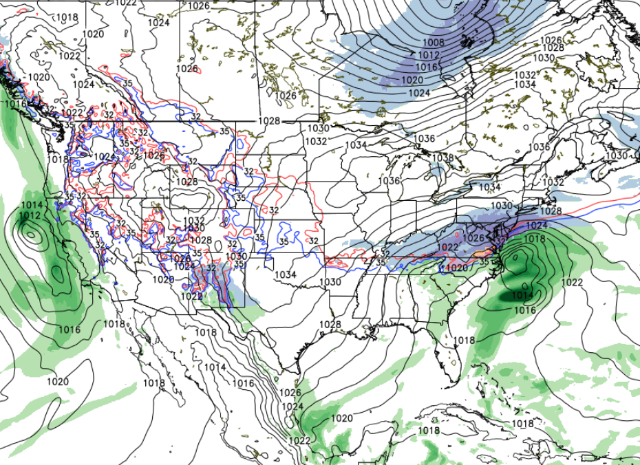 This mornings GFS model which was the most aggressive model at the time. This model was phasing both the feature over the Plains and over Canada to produce a large snowstorm for the Northeast