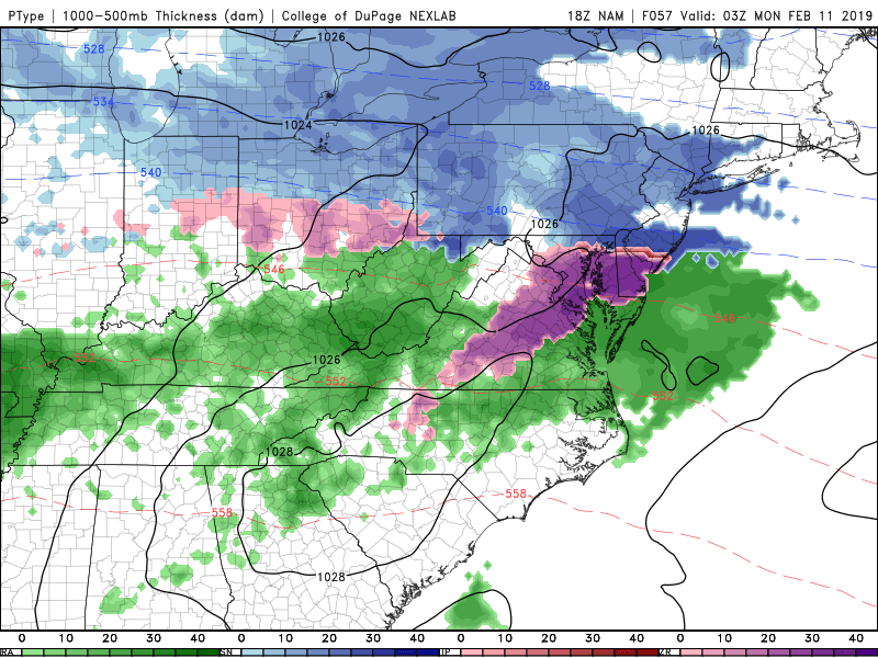 This evening’s NAM model showing the potential for some very light snow Sunday night/early Monday AM