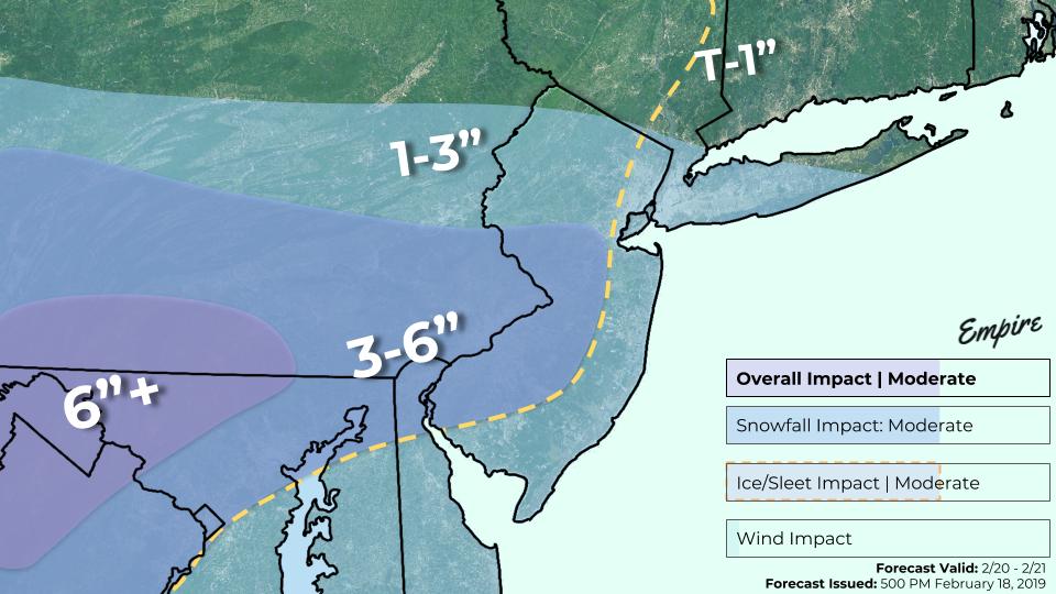 While locations off to our south and west may see some significant snow and ice totals from this system through Wednesday, the overall setup is not favorable for the New York City area to see more than a trace to around three inches of snow before changing to a mix & plain rain. Locations off to the north and west of the city may have a tough time seeing much of anything in the way of snow due to the dry air in place likely taking a prolonged amount of time before becoming saturated enough for snow to develop. Additionally, model guidance has been consistently showing the best forcing and snow growth displaced well to our south during the majority of this event, which will further work to dampen snow totals across the area.