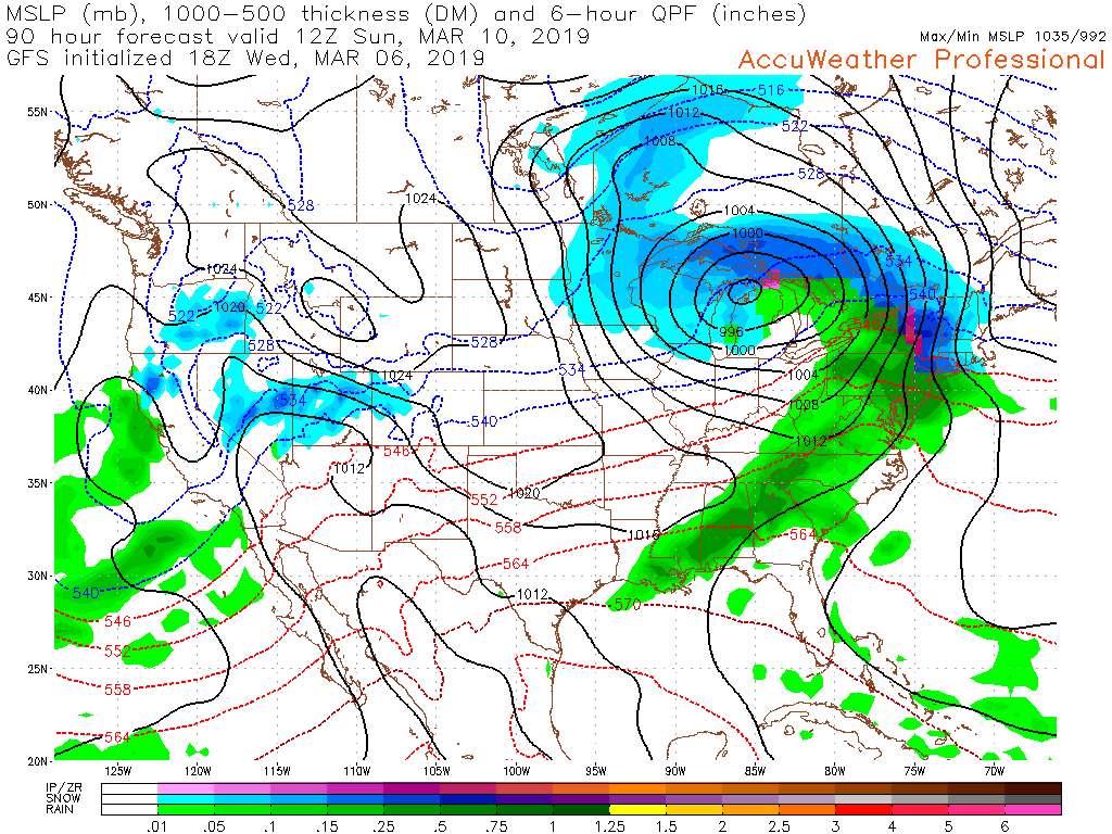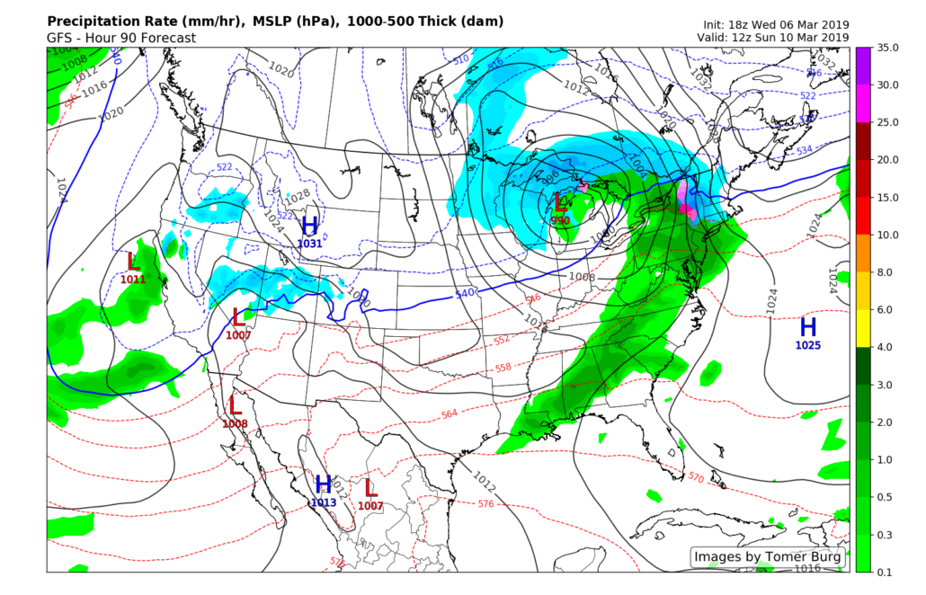 This evening’s GFS model showing our next system cutting well off to our west with the potential for some moderate/heavy rain on Sunday