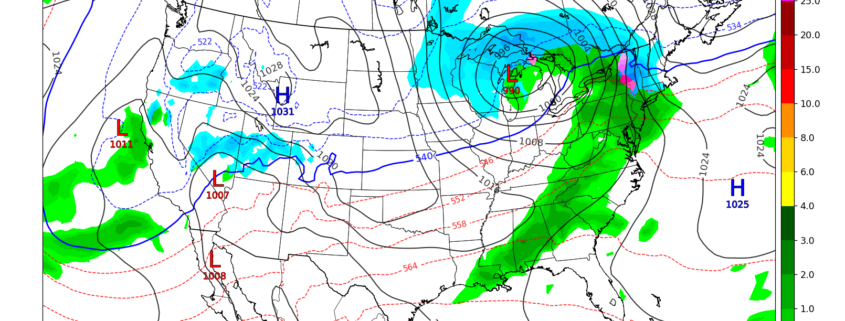 Any snow/rain associated with this system will quickly move off the coast by late Friday night, with mostly cloudy skies and lows in the 20’s left in it’s wake.