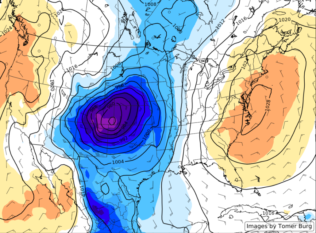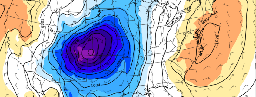 A large and unusually intense cyclone will develop over portions of the Central Plains on Wednesday, leading to a driving snowstorm for the Northern Plains and very heavy rainfall for portions of the Southeast. Thankfully, much of the action will remain well off to our west through Thursday as this system cuts up through the Midwest and into the Great Lakes. As this system moves through the Lakes, the are of low pressure will begin to gradually decay and weaken. Regardless, deep southerly/southwesterly flow will still overspread the Mid-Atlantic and Northeast by Thursday, with temperatures rising above seasonable levels.