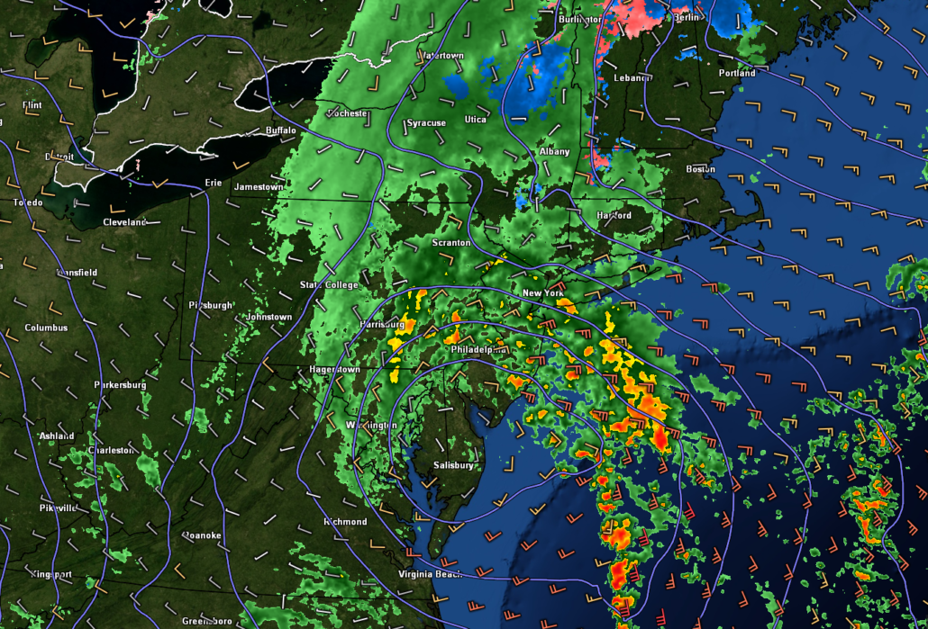 Periods of moderate to potentially heavy rain will move through the NYC area from the late afternoon and into the evening hours as the low moves into eastern Maryland. Surface low pressure will continue to move closer into Pennsylvania/New Jersey during the overnight hours, causing precip to become more “showery” in nature. These showers will still be capable of brief periods of moderate to occasionally heavy rain, but the overall impact and flash flood threat for this event is quite low.