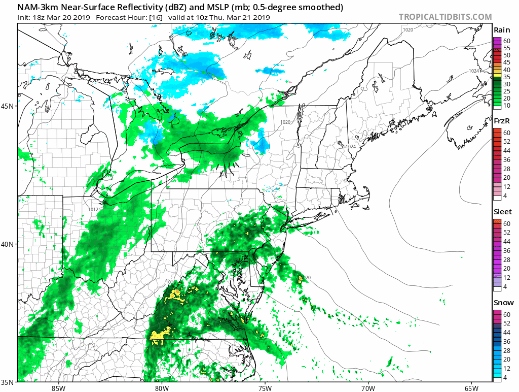 This afternoon’s NAM model showing the evolution of the storm system on Thursday