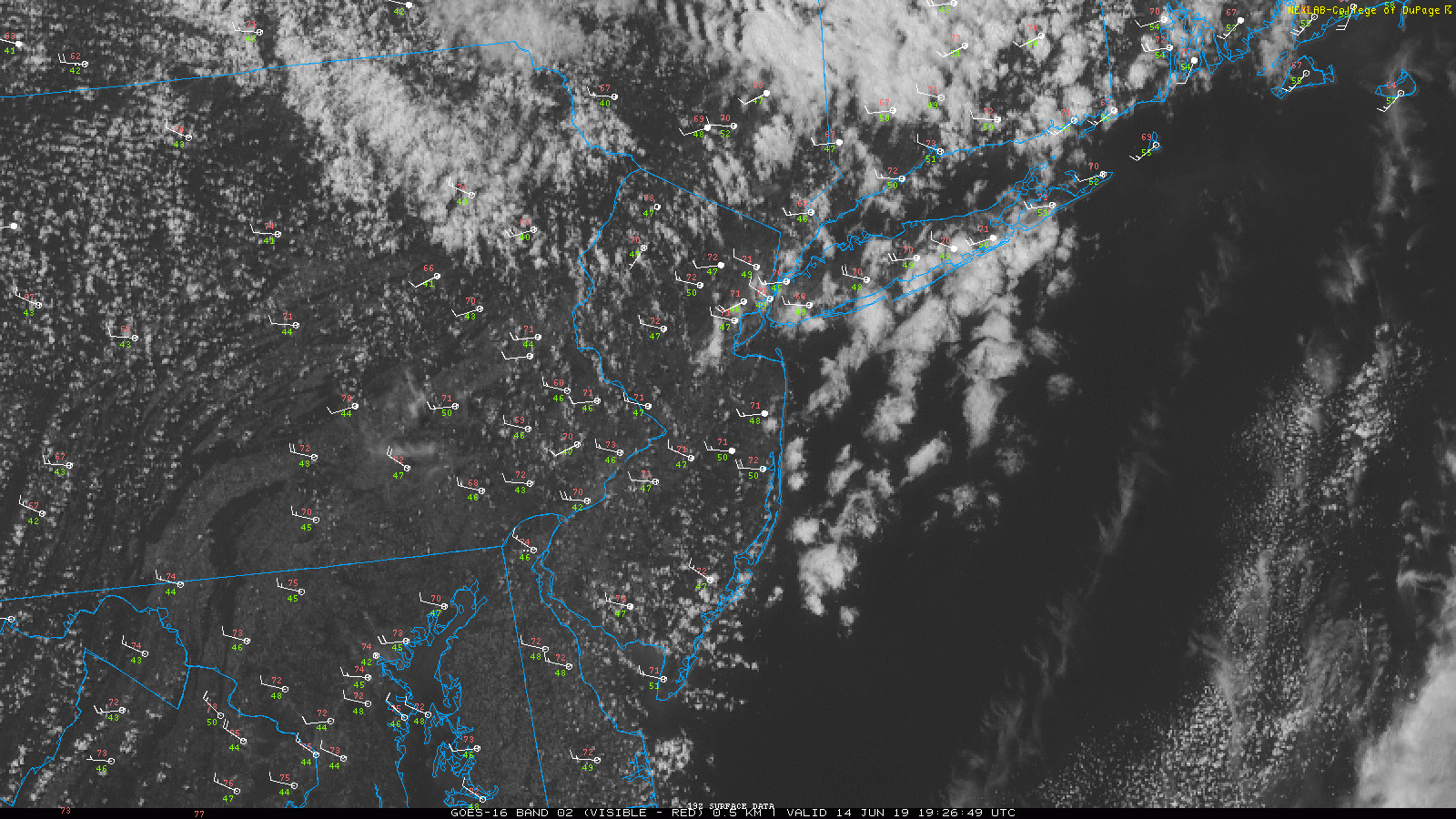 Loop of this evening’s visible satellite imagery along with regional surface observations (click to animate)