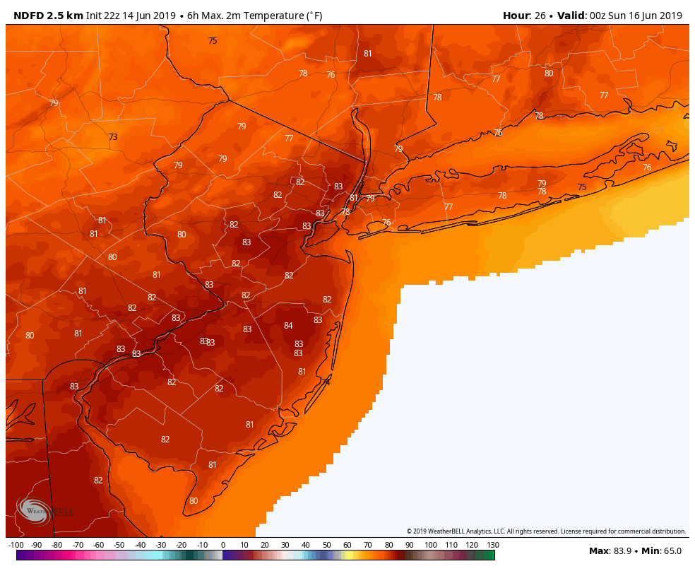 Sunday should start off with some broken clouds/overcast in place as high pressure offshore funnels low-level moisture in. There may even be a residual shower or two early in the morning, but nothing too impactful overall. Some breaks in the clouds may attempt to develop during the afternoon hours as a frontal boundary stalls over Pennsylvania. Highs will likely rise into the lower to middle 80’s once again–with warmer temperatures possible if there are more significant breaks in the clouds. The threat of showers and storms looks to increase during peak daytime heating Sunday (mid-late noon). While severe storms are unlikely, some of the storms could be strong, with gusty winds and heavy rainfall. The threat of heavy showers and storms will likely extend well into the evening/overnight hours as the front remains draped to our west. Unfortunately, we look to close out the weekend the exact opposite of the way we started. Lows Sunday night to be quite warm & muggy, with temps in the middle to upper 60’s.