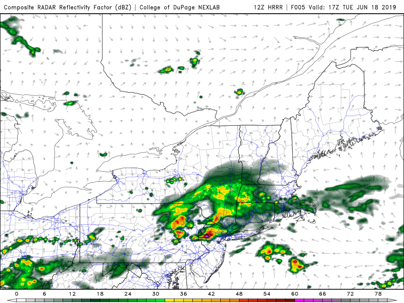 Forecast model guidance is in excellent agreement that storms will develop early in the afternoon. In fact, the NAM and HRRR models suggest that storms may develop as early as noon. As they form near the warm front in Eastern Pennsylvania, they are expected to track east and southeast into a more unstable atmosphere.