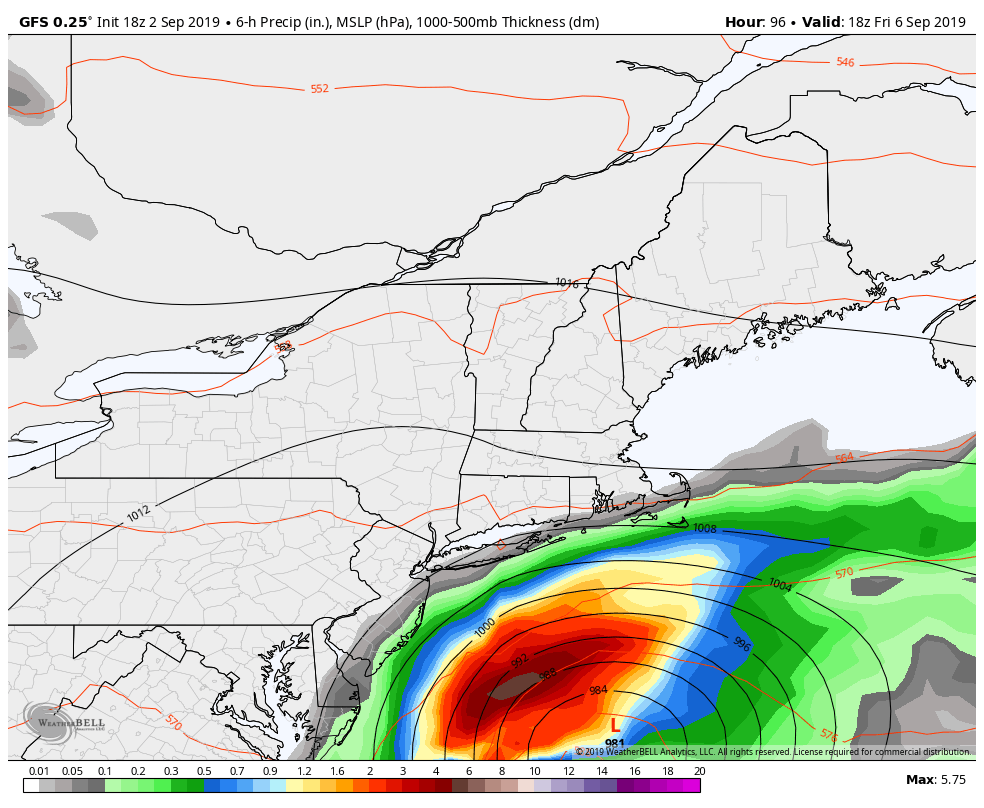 Dorian is expected to get “kicked” eastward away from the coast as we move toward Thursday and Friday. However, it will still be close enough to our area beaches to closely monitor. Some rain is expected along the shore from the systems outer bands. Winds and high surf are also likely to occur. The weather will improve by the weekend as Dorian moves into the northern Atlantic.
