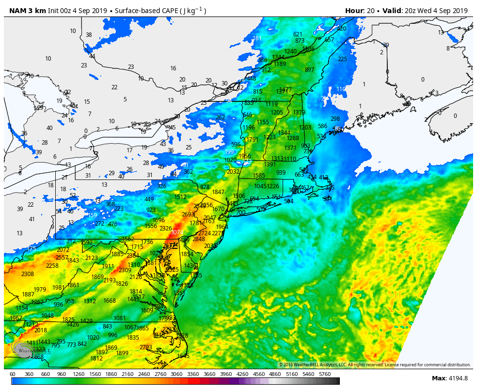 NAM model forecasting ample instability on Wednesday
