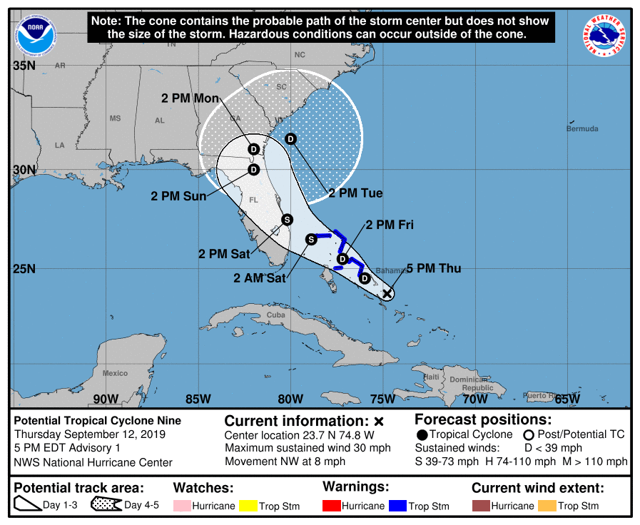 NHC initiates advisories on PTC 9 in the Bahamas