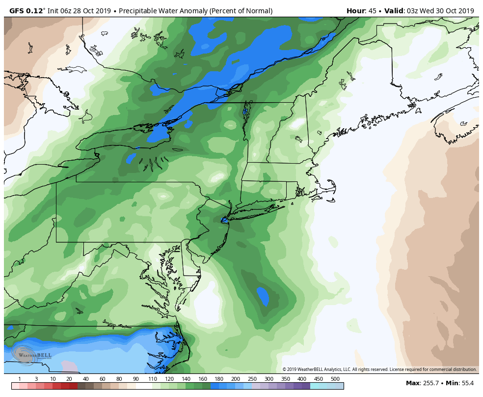 The pattern changes beginning on Tuesday, when the wind direction flips around to the southeast. This means most of the area will experience an “onshore flow”, with winds coming off the area waters. Cool, damp air will quickly take over. The atmospheric column will saturate, leading to a high likelihood of low clouds and drizzle. It won’t be pretty.