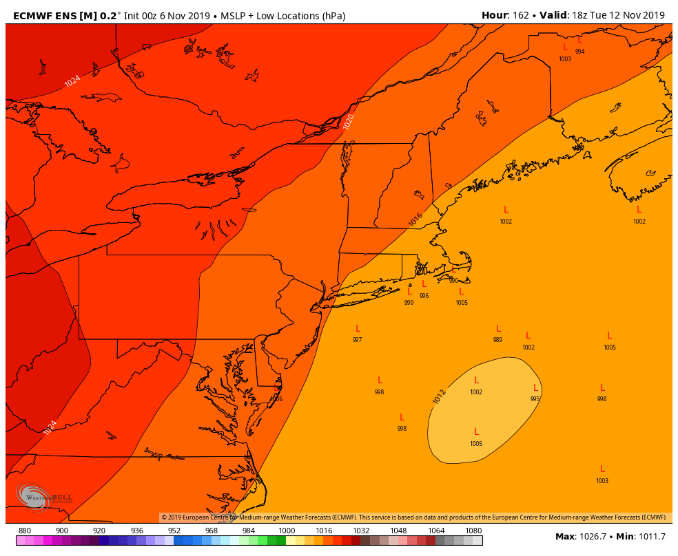 That should be a bit of a hint to all of us that we won’t get out of this pattern without at least a threat for wintry weather. Lo and behold, ensemble guidance is beginning to hint at the potential for a notable low pressure system developing off the East Coast during the middle part of next week
