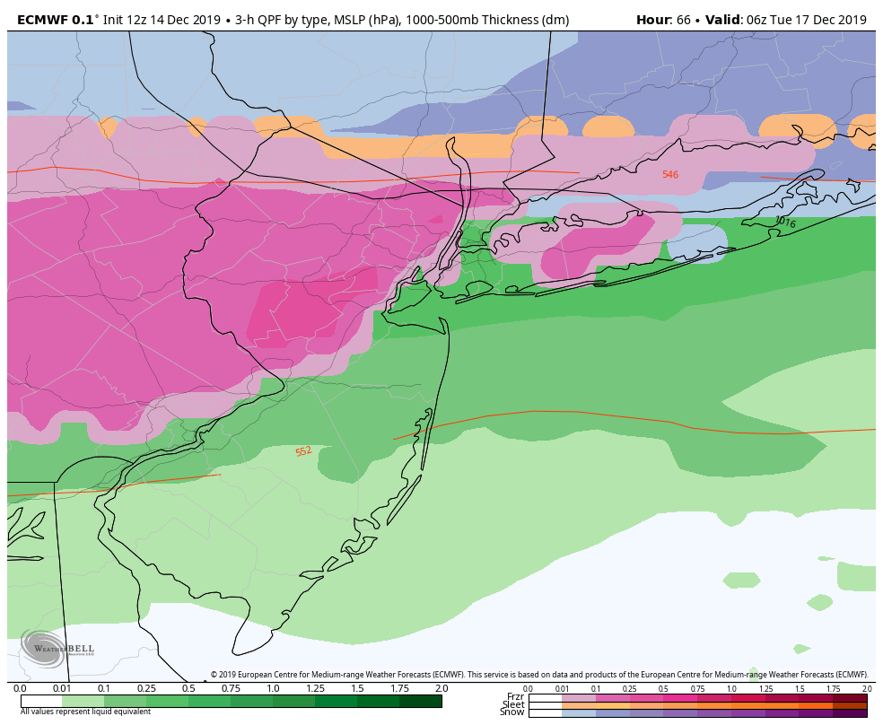 Tuesday 2:00am: Freezing rain may continue across the interior leading to very icy conditions. Plain rain near the coast and in the immediate suburbs of NYC