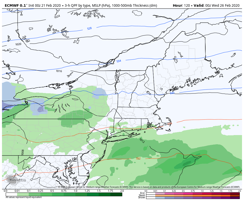 Unsettled weather conditions may persist through midweek, as a few disturbances track through the Mid Atlantic and New England. Again, temperatures will remain warm and there is little support for frozen precipitation anywhere – so expect more of the same song and dance that this winter has offered us so far.