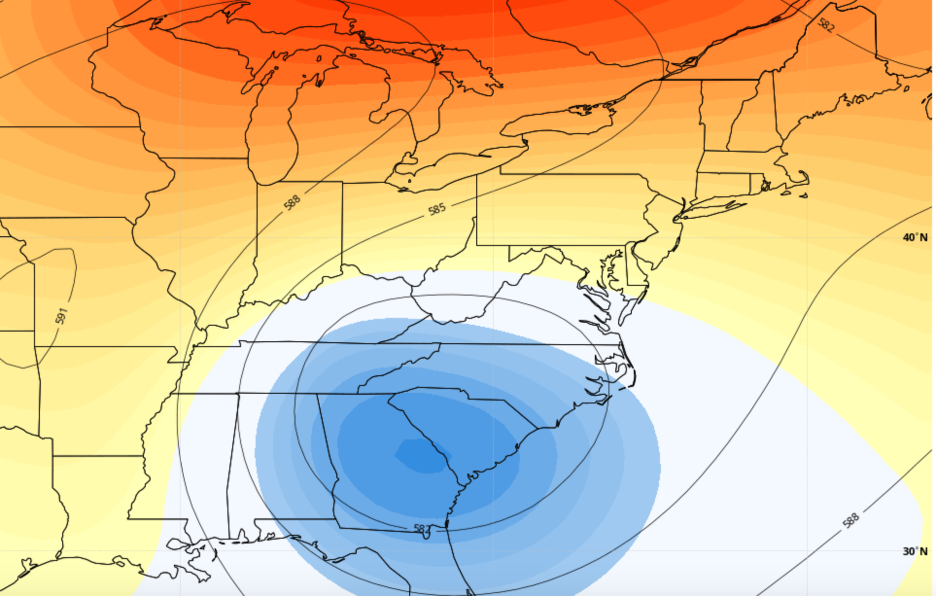 Everyone should become familiar with the term “cutoff low” over the next week, as it may become both your friend and foe. A prolonged stretch of pleasant weather is likely in the next few days, through at least Wednesday, as a cutoff low drifts into the Mid Atlantic States. This cutoff low will be responsible for deflecting abnormally warm temperatures northward into Canada, and keeping cool and rainy weather southward in the Carolinas. The NYC Area will be comfortably sandwiched in between.