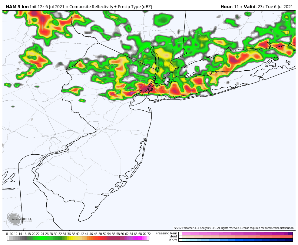 Weather conditions look more unsettled and somewhat cooler on Thursday and Friday. The cold front and upper-level trough will slow down and interact with Tropical Storm Elsa’s remnants from over the Southeast US. This pattern will at least produce more clouds with perhaps some scattered showers or thunderstorms over the region. There is more uncertainty on how much direct impacts there will be from Elsa’s remnants, which will likely track near or southeast of the New York City metro area.