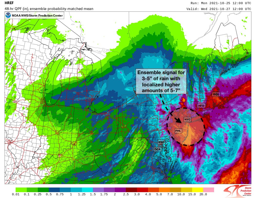 A strong low pressure system will develop off the Mid-Atlantic coast from tonight into Tuesday morning. Periods of heavy rain and flooding are likely in the NYC Metro, with rainfall totals of 2-4″ expected. Travel delays and difficulties are likely. While a notable storm will occur, we do not expect the impacts from this system to be similar to those experienced from Tropical Storm Ida in September.