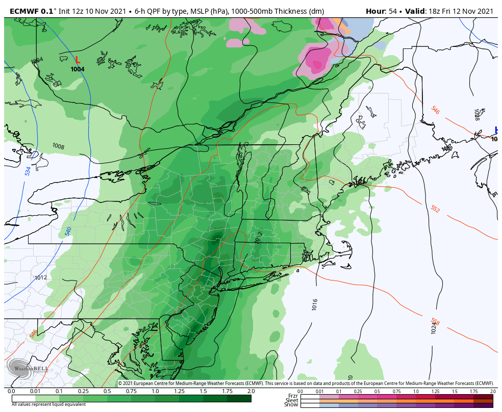 ECMWF model showing rain across the NYC Metro Area on Friday.