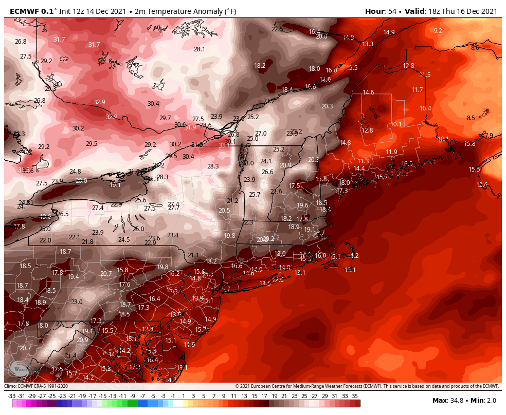 Warmer than normal weather has gradually settled in to the area over the past few days, with the atmospheric pattern across the Eastern US acting more like it typically does in October than in mid December. The pattern will culminate in much warmer than normal temperatures during the next few afternoons.