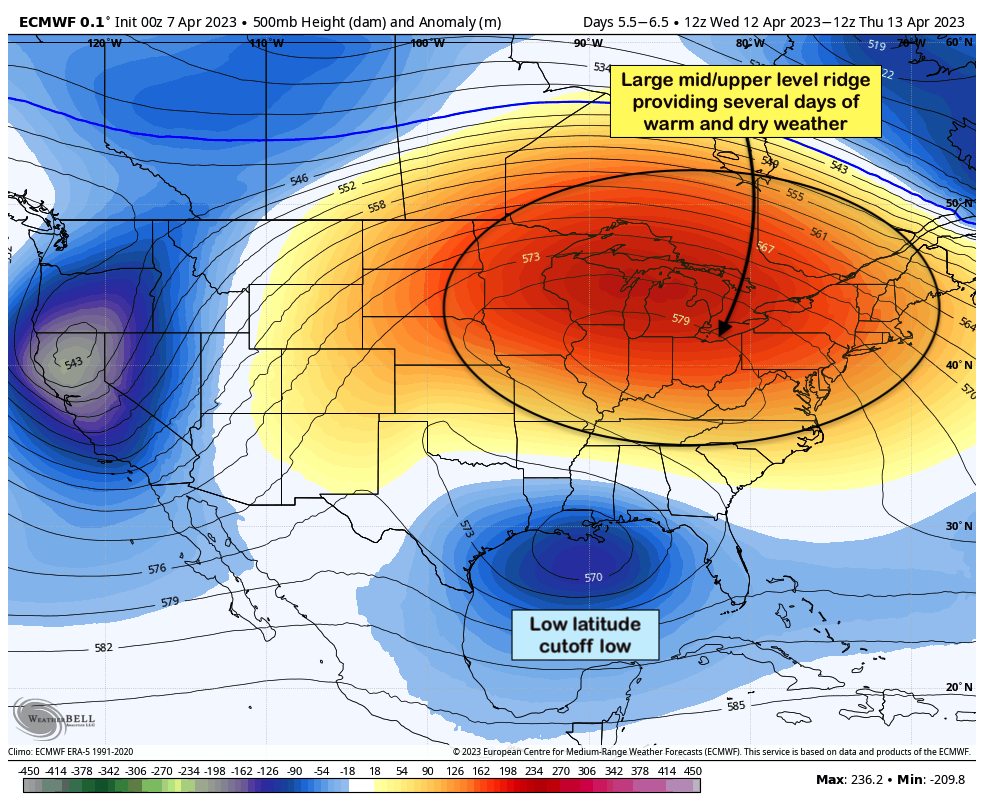 The active jet stream is finally set to take a step back this weekend, with most model data suggesting that a large mid level ridge will build overhead by the early part of next week. Higher than normal heights in the mid levels of the atmosphere often signal warmer temperatures, and warm air advection is expected to continue into the midweek time frame.