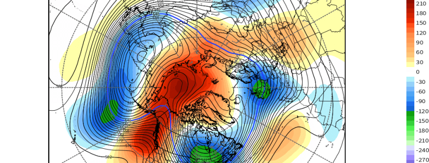 The forecast decrease in AAM means we have less mean west to east flow in the high-latitudes, which significantly helps to weaken the polar vortex, and helps lead to more stagnation in the mean flow in general — since the “momentum” (thus the ‘M’ in AAM) is being slowed down. This inherent stagnation to the pattern in the Arctic leads to more high-latitude ridging and blocking to develop.