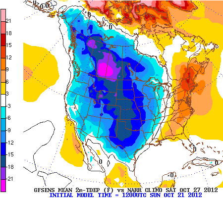 A Strong Aleutian Ridge: This feature may be the most underrated signal for pattern changes in the Northern 1/3 of the US. A strong ridge over the Aleutians and into Alaska can successfully dislodge cold air from Northern Canada and the poles into Central Canada and even the Northern 1/3 of the United States. With snow cover already above normal in that area this time of year, this development becomes very important. More cold air and below normal height anomalies for a few weeks over that area will set the stage for the presence of cold air to our north to start the meteorological winter. Additionally, forecast guidance has this feature developing into an anomaly — and a dominant one at that. +2.0 to +3.0 standard anomaly of heights throughout much of the Aleutians into Western Alaska is a common theme on mid range model guidance and ensembles. Even more interesting, down the road, is the potential impact this anomalous feature could have on the pattern. We don’t have to look far to find the last time one of these Aleutian Ridges popped up — and we can also find a familiar theme on the developments it sets off on the model guidance today.