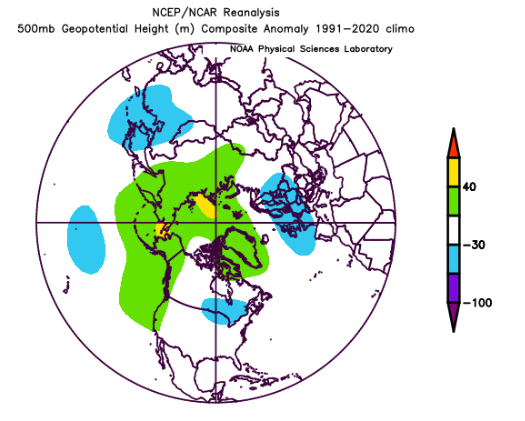 A -NAO has historically been correlated to stormy and cooler weather in the Northeast United States and the NYC Metro region, especially during the winter months.