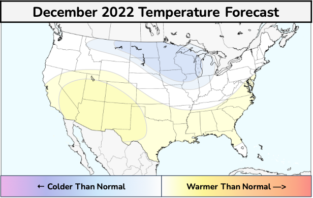 One of the more complex December forecasts in the last decade, our current forecast calls for a colder than normal pattern across the Northern Plains and Great Lakes with the possibility of substantially colder than normal conditions in the Dakotas, Minnesota and the Upper Midwest at times. Meanwhile, warmer than normal temperatures are expected from the Desert Southwest into the Southern Plains and Southeast States. An active storm track is forecast from the MS Valley into the Ohio Valley and Northeast states.