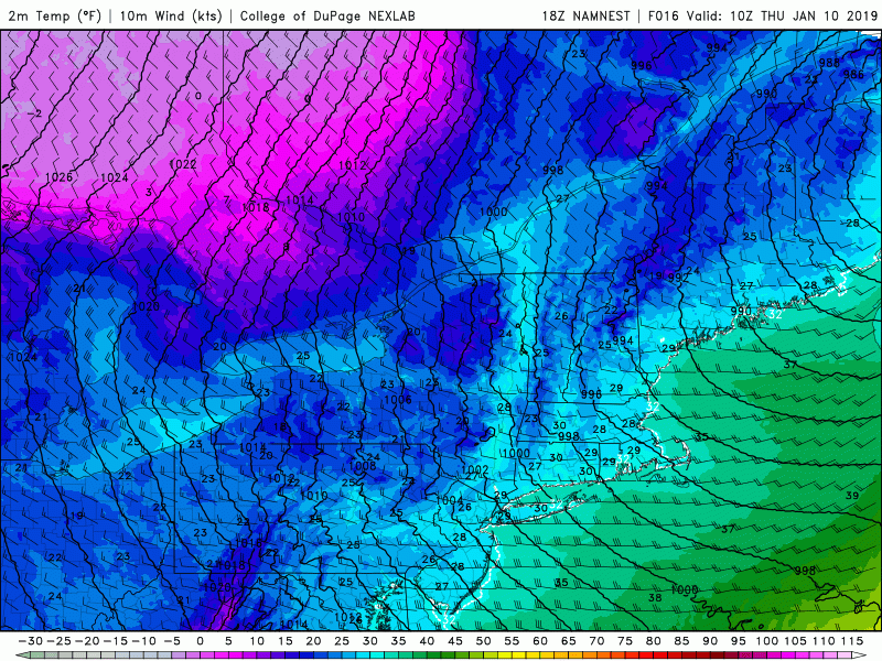 Tomorrow (Thursday) will likely start off quite chilly with temperatures in the lower 20’s for the immediate New York City metro area. Continued breezy conditions will yield wind chills in the teens for the entire area tomorrow morning, so it’s definitely going to feel quite cold for the morning commute. High pressure will remain in place for the majority of the day which will allow for partly sunny skies and gradually diminishing winds into the afternoon hours. Highs will likely be hard-pressed to rise above-freezing tomorrow afternoon, with locations to the north and west of the city likely staying in the middle to upper 20’s.