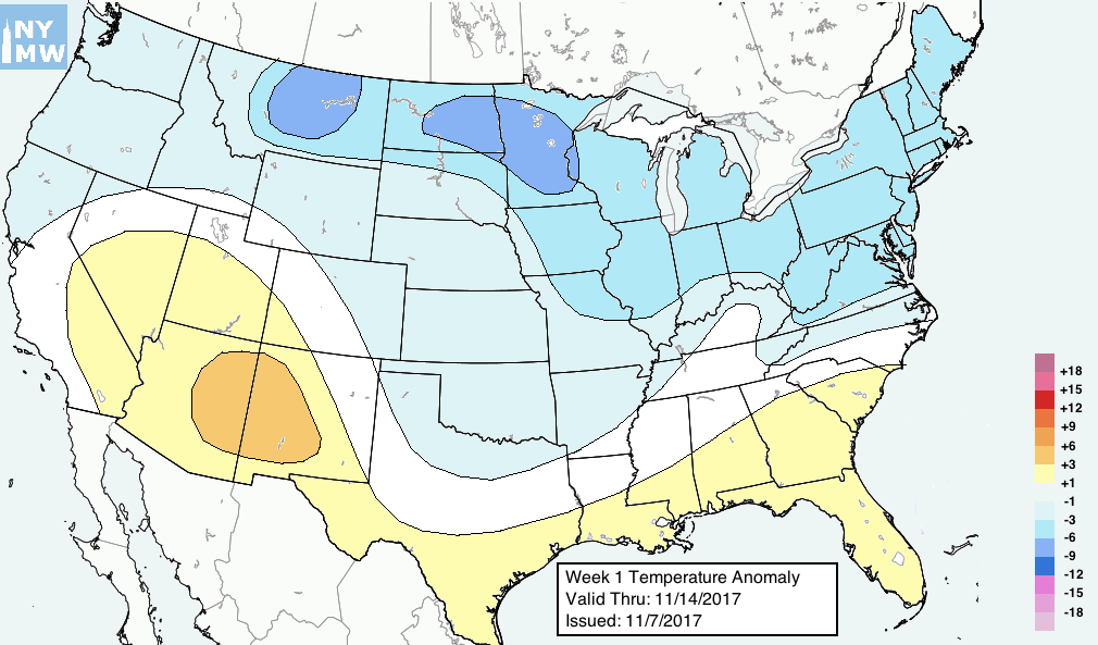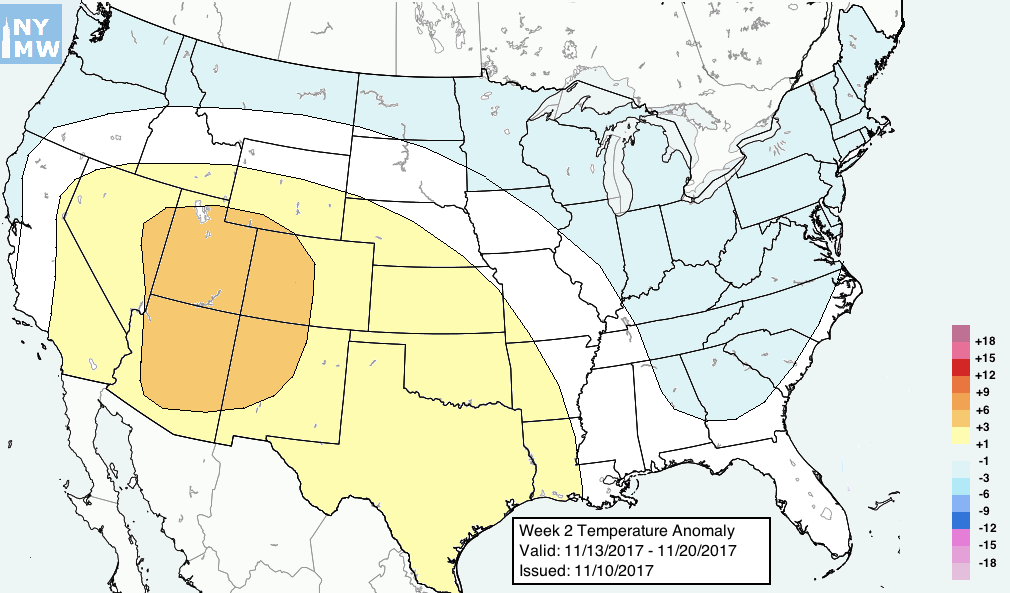 There are several analogous years to 2017 in the tropical forcing/SSTA dataset. All of them featured similar responses and retrogrades of the pattern in Late Nov/Early Dec with high latitude blocking episodes. As a result, have adjusted the outlook to account for this. The result of these hemispheric changes will be cooler anomalies developing over the Northeast and possibly across the entire Northern ⅓ and Eastern ⅓ of the USA. Future outlooks will refine and tweak this forecast.