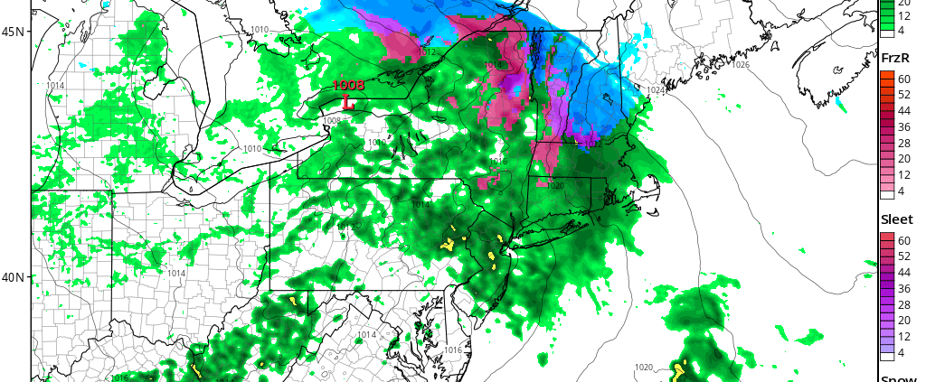 /by John HomenukA low pressure system moving into the Eastern Great Lakes will bring precipitation into the Northeast US from late Tuesday night into Wednesday morning. As this occurs, warming in the atmospheres mid levels will surge through the Mid Atlantic and New England, changing most areas over to rain. However, cold air in the lower levels […]