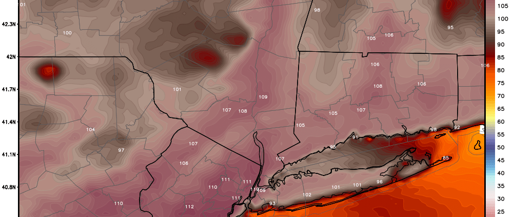/by Miguel PierreOppressive heat and humidity will continue through Sunday with a strong upper-level ridge over region. Temperatures are already approaching the upper 80s or lower 90s late this morning. High temperatures will be middle to upper 90s both Saturday and Sunday, over much of the region. Heat index values will be between 105F to 110F this […]